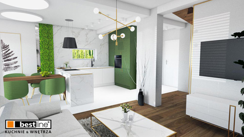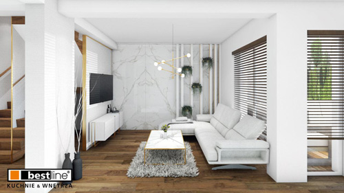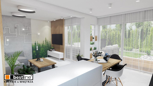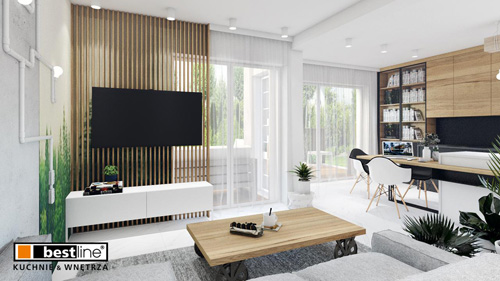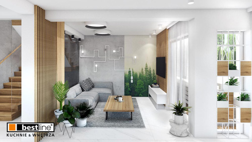 Budynki mają dwie kondygnacje. Parter składa się z przestronnego salonu połączonego z jadalnią, otwartej kuchni, toalety oraz wiatrołapu. Piętro oferuje elastyczność aranżacyjną – według projektu można tam urządzić trzy sypialnie oraz rodzinną łazienkę, jednak brak ścian działowych pozwala dostosować przestrzeń do indywidualnych potrzeb. Istnieje także możliwość realizacji ścian oraz pełnego wykończenia wnętrza według oczekiwań klienta.