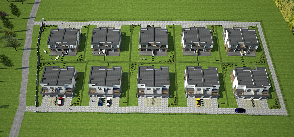 Nowoczesne i kameralne osiedle składające się z 20 domów w zabudowie bliźniaczej to idealne miejsce dla osób ceniących komfort, bezpieczeństwo i bliskość natury. Położone w otoczeniu zieleni, zapewnia spokój oraz przyjazną atmosferę do życia.